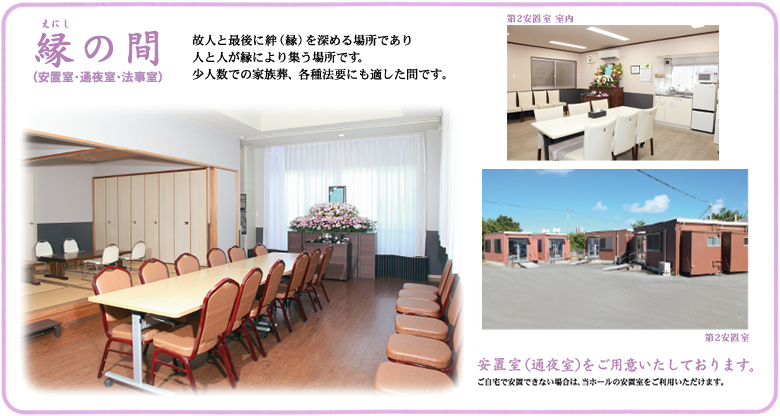 故人と最後に絆(縁)を深める場所であり人と人が縁により集う場所です。小人数での家族葬、各種法要にも適した間です。